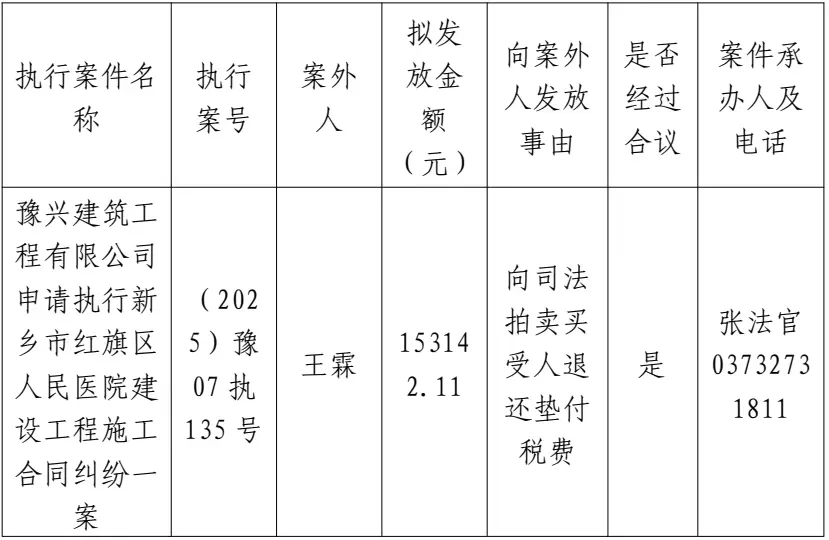 原标题:《新乡市中级人民法院关于向案外人发放执行案款的公示》