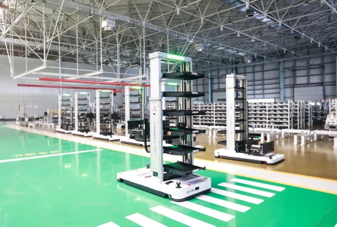 ▲ 自动导引车在生产车间内穿梭,按程序自动配送物料。