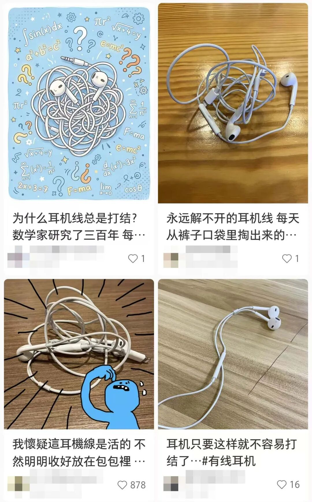 解开有线耳机的结是哲学问题。(图/小红书截图)
