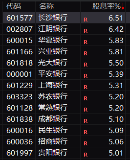 银行股股息率中值高达4.4%,远高于1年期银行存款利率。其中长沙银行、江阴银行股息率均超6%,华夏银行、兴业银行等11只个股股息率超5%。