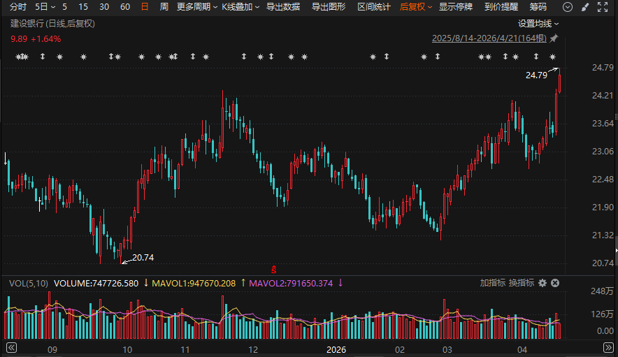 银行股早盘强势上攻,板块指数逆市高开高走,盘中一度涨超1%。杭州银行、建设银行股价创复权后历史新高,中信银行、江苏银行、齐鲁银行、成都银行等个股也纷纷创下年内新高。