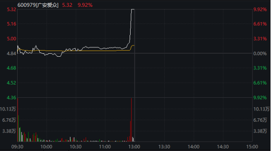 其中,粤电力A与广安爱众盘中均呈现直线拉升态势,短短10分钟内便封死涨停。