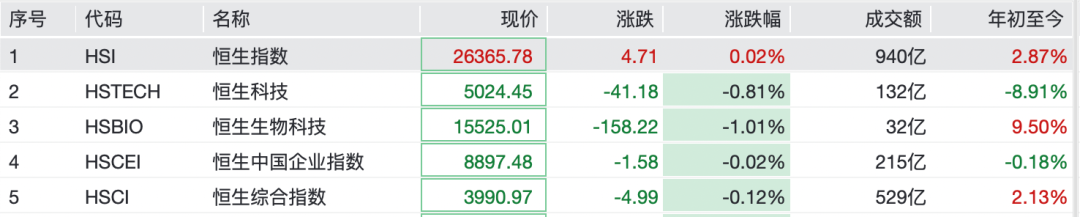 港股市场涨跌不一。截至发稿,恒生指数微涨0.02%,恒生科技指数下跌0.81%,恒生中国企业指数下跌0.02%,恒生生物科技指数下跌超1%。个股方面,医药股跌幅明显,药明康德、百济神州、信达生物、康方生物等纷纷下跌;腾讯控股、阿里巴巴、比亚迪股份等均下跌超1%。