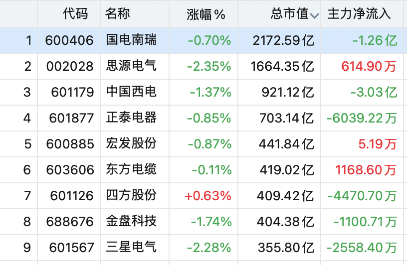 电网设备板块震荡下挫。思源电气、汉缆股份下跌超2%,中国西电、正泰电器、东方电缆、三星电气等个股纷纷下跌。