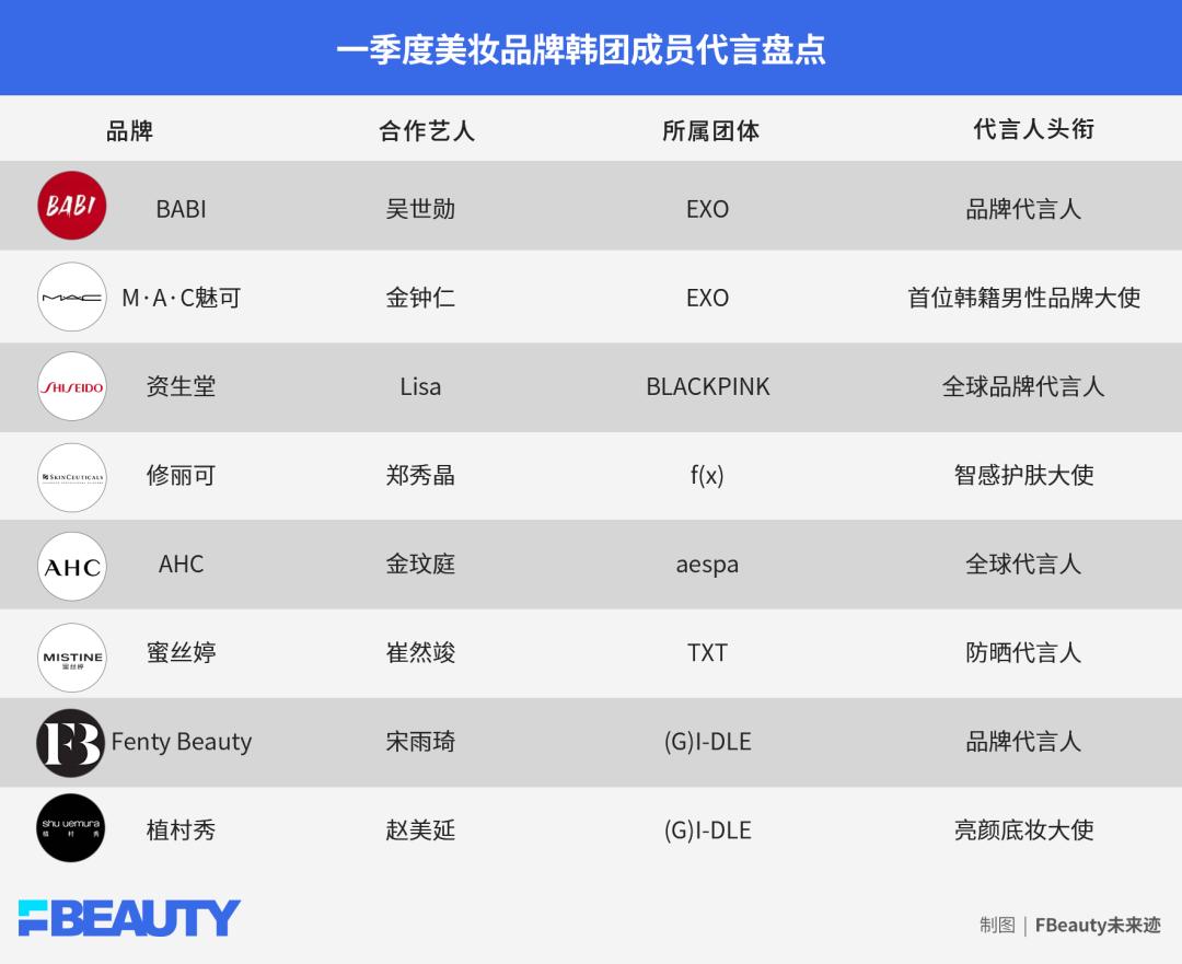 据不完全统计,一季度共有8位韩团成员拿下美妆品牌代言,且头衔多集中于“全球品牌代言人”“亚太区代言人”等较高层级。吴世勋、金钟仁、Lisa、郑秀晶、金玟庭、崔然竣、宋雨琦、赵美延等均出现在一季度美妆代言名单中。