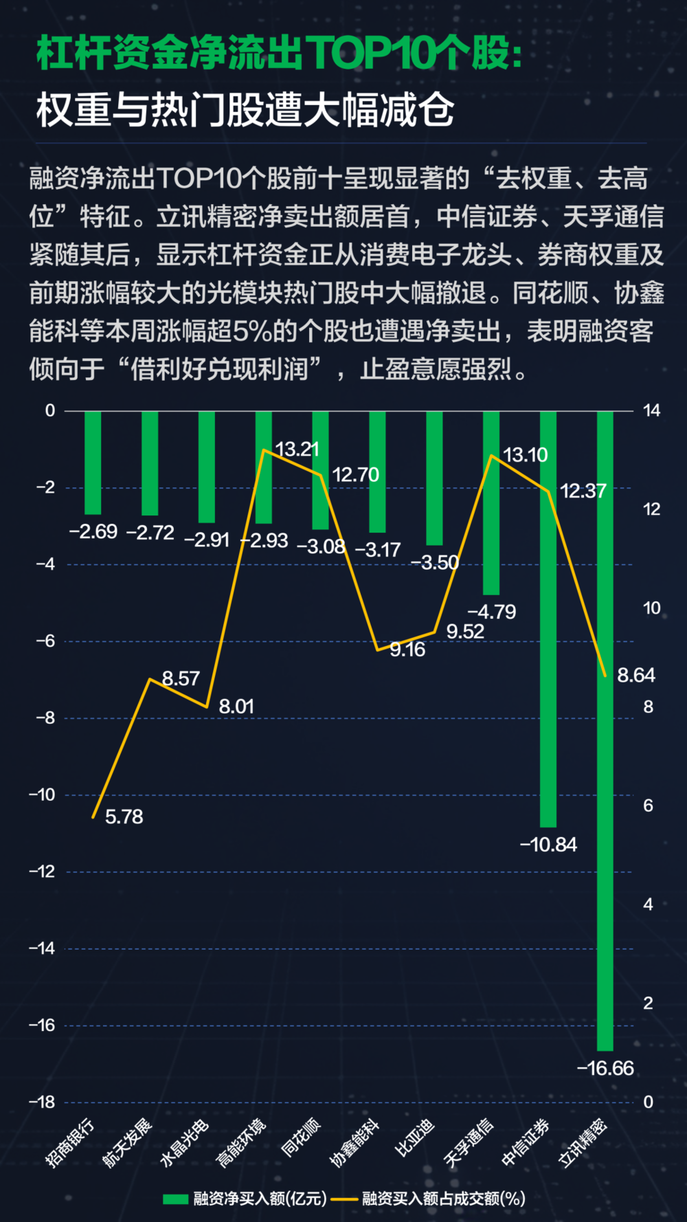 融资净流出TOP10行业则呈现出“大金融+传统周期”被抛售的特征,证券板块以近14.8亿元的净卖出额位居首位,反映出杠杆资金对“牛市旗手”的情绪较为谨慎。