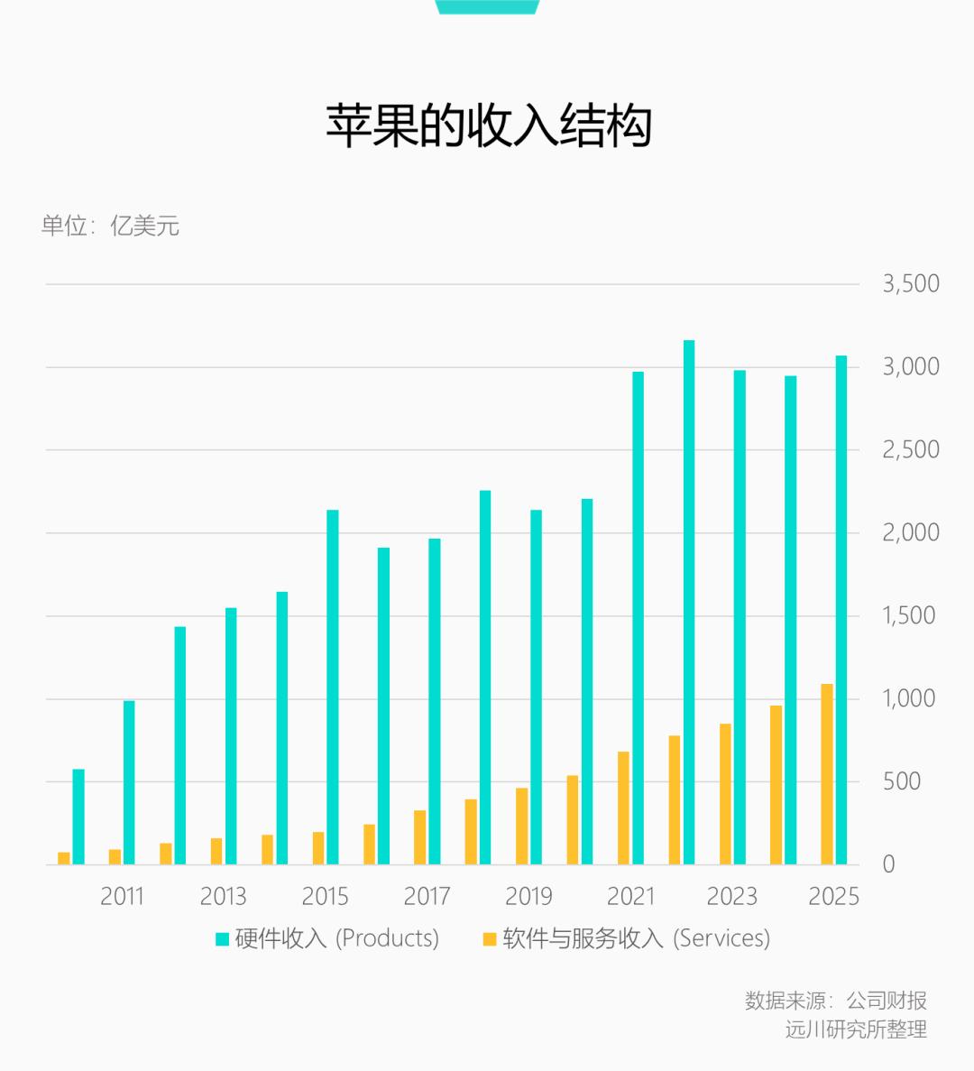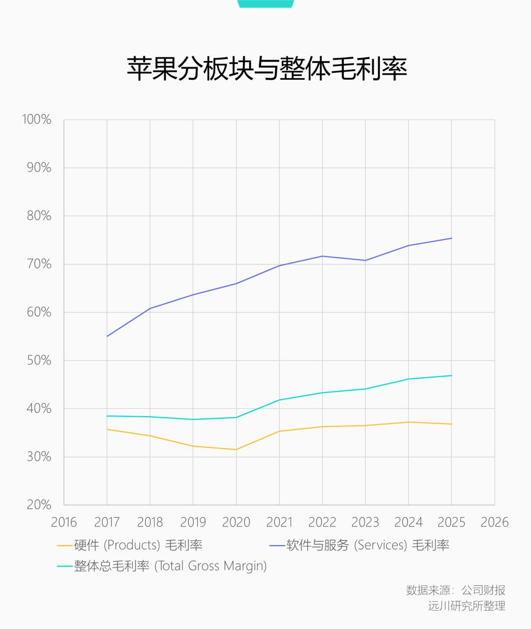 软件方面,苹果的增长越来越依赖高毛利的软件服务。