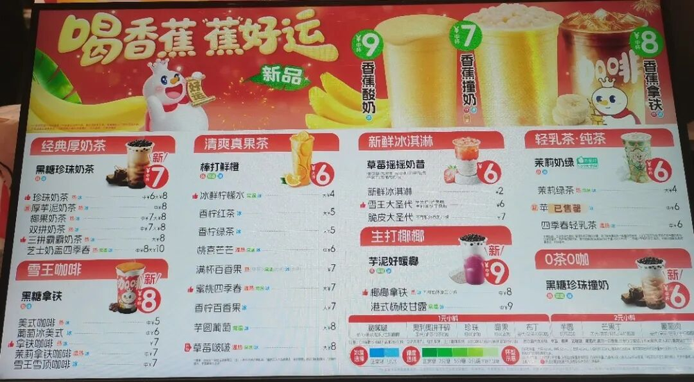 (右滑查看蜜雪菜单)