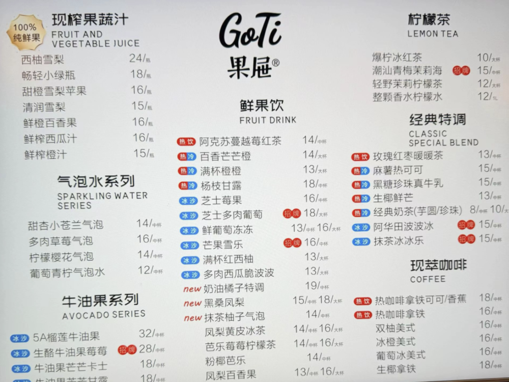 去他店里一看,门头叫“Goti果屉”,我还以为是卖果切的,谁能想到里面卖汉堡?小店只有他和老婆两个人,菜单上的饮料种类比蜜雪冰城还多,价格却是蜜雪的两倍多。更离谱的是,他还架炉子卖现做汉堡,一个25块!在侯马这个八线小城,一碗刀削面才8块,谁会花三碗面的钱买个汉堡?