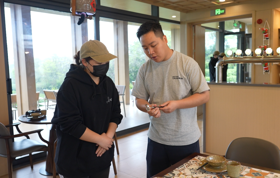 上午10点半,周末的丰义景区游人如织。高宇鹏一到灯塔餐厅便切换“总控模式”,投入开餐前准备:逐桌检查台面细节、核对物料储备,又扎进后厨与厨师长确认备餐量和出餐顺序。他说:“丰义店人气旺,我必须亲自守着才放心。”