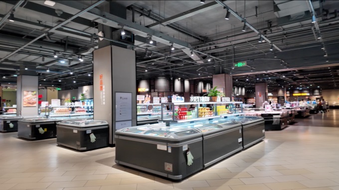 该门店坐落于娄底市娄星区长青中街42号,经营面积达3848平方米,整体空间分为上下两层:一楼主要经营家居百货与各类食品,二楼则聚焦生鲜品类。