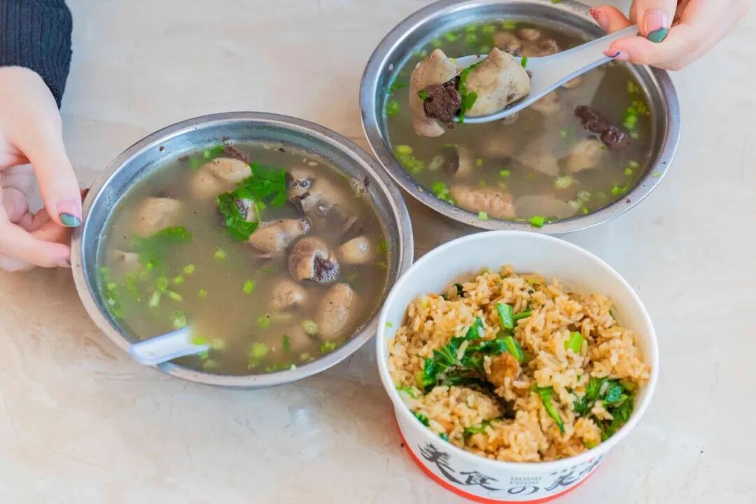 实际上,大肠血多作为汤品存在。若只喝汤,显然满足不了同安人的胃口。每到饭点,“大肠血+咸饭”的标配便会自然浮现在同安人的脑海里。咸饭淋上厦门辣酱才够味,油润的米粒中裹满干贝、香菇、包菜、肉丁等辅料,营养又管饱。喝上一口热汤,这顿饭才算吃得酣畅尽兴。