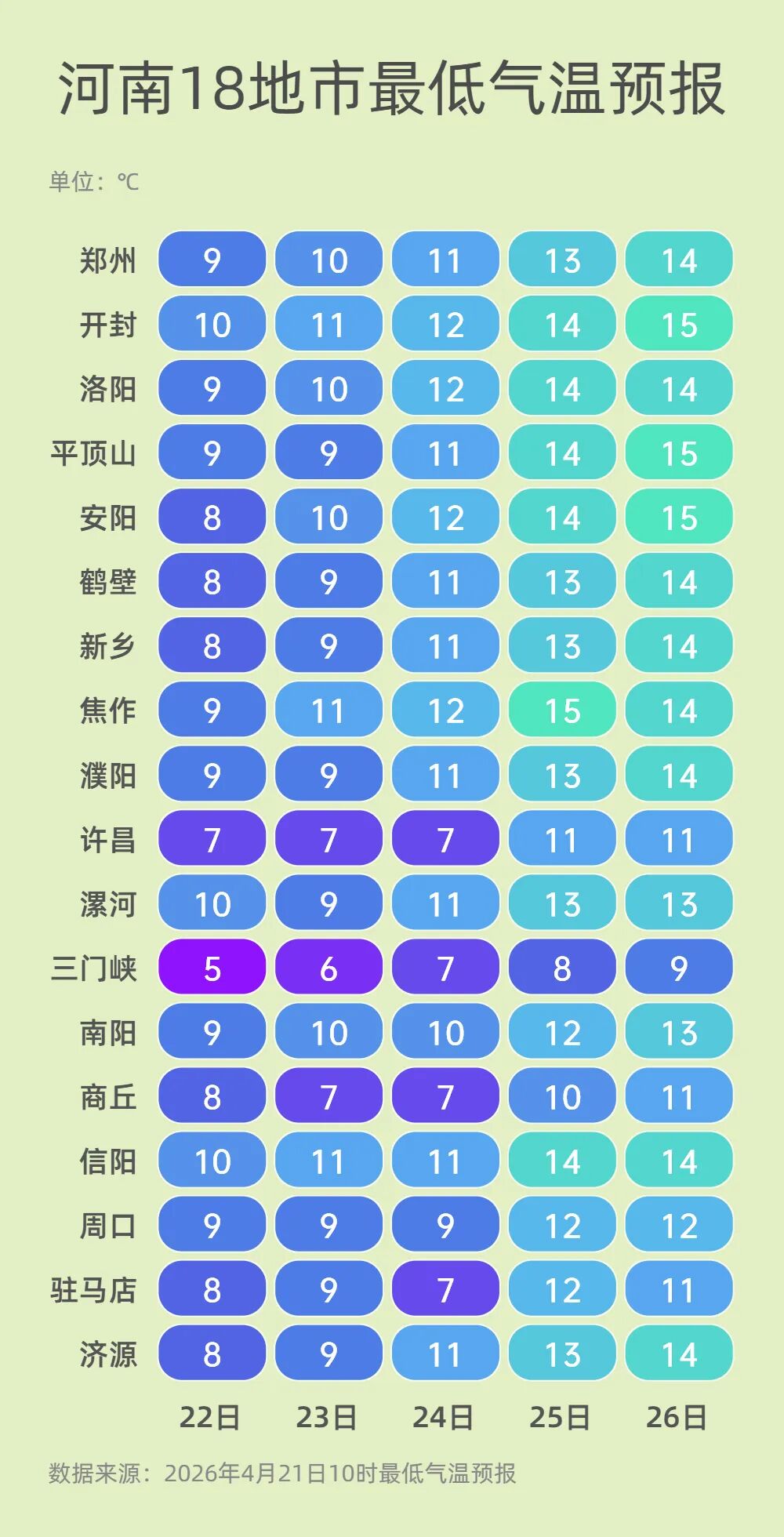 最低气温:10~11℃