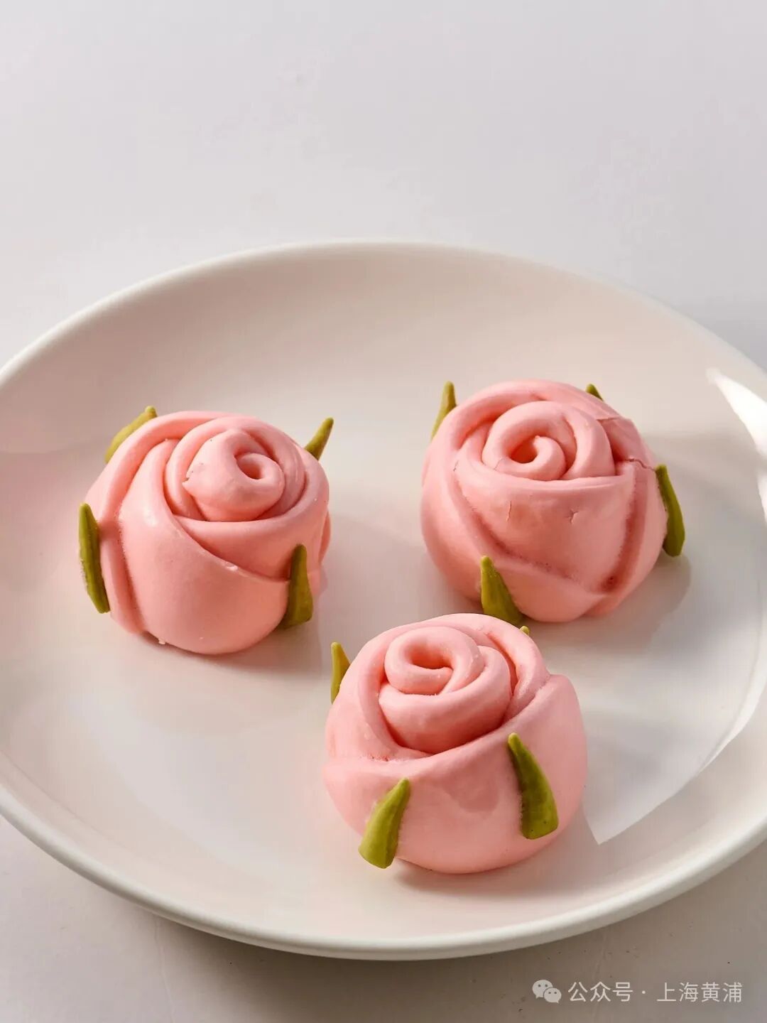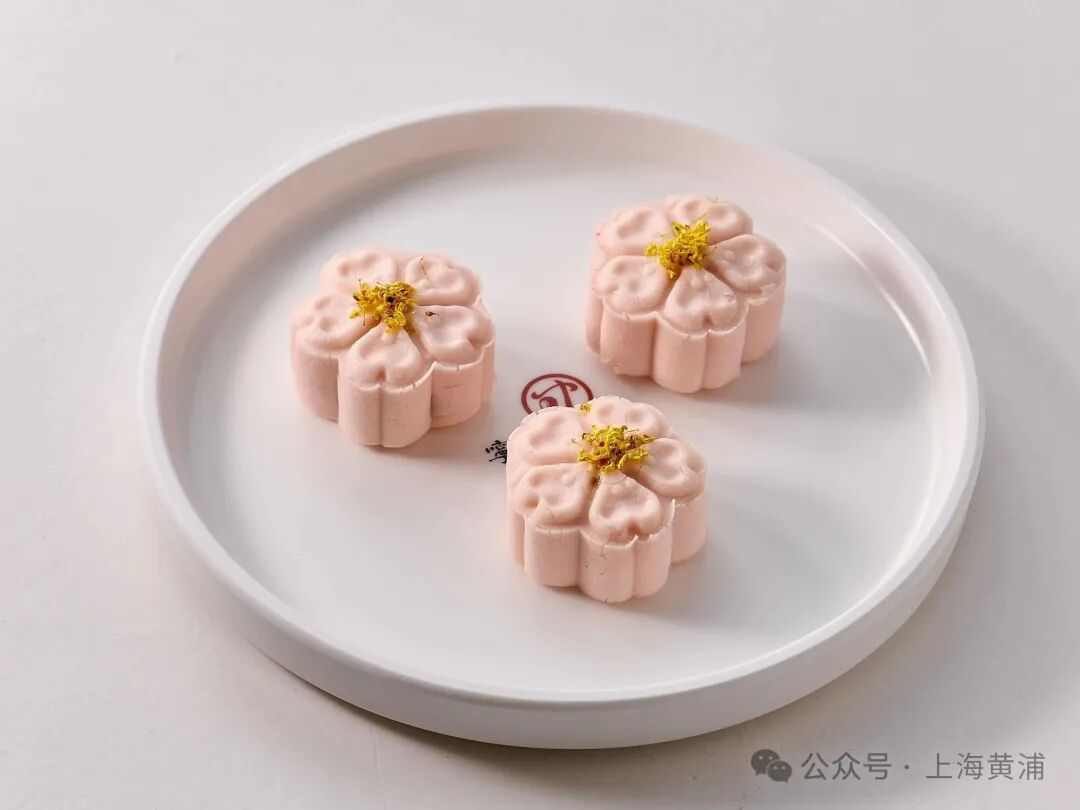 春风松月楼的外带窗口前,一位排队的外国食客被新推出的“玫瑰花包”吸引。粉嘟嘟的玫瑰造型十分可爱,让素食爱好者也能品尝到这份春日限定美味。不远处的宁波汤团店,刚蒸好的桃花糕引人注目,以桃花为造型、干桂花做花蕊,粉黄相间的色彩传递出春日的明媚气息。
