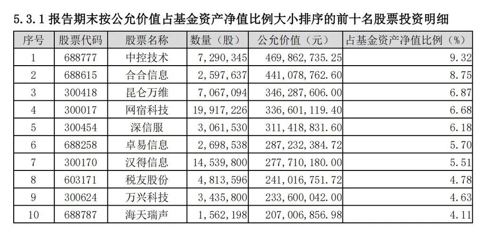 资产配置上,德邦稳盈的行业分布高度集中于AI赛道,信息传输、软件和信息技术服务业持仓占基金资产净值比例达84.66%。前十大重仓股均为中控技术、合合信息、昆仑万维等AI应用相关标的,单一赛道集中度高,这也是其净值波动较大的直接原因。