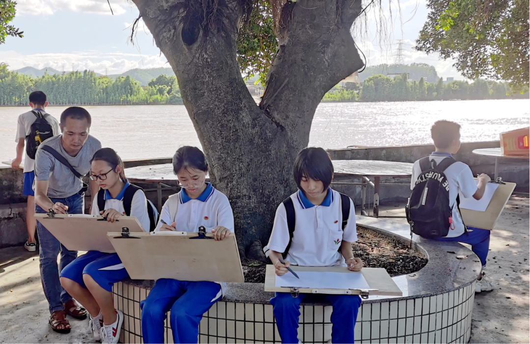 科技室里,专业无人机训练设备齐全,学生们在专业教练指导下学习飞行技能,变身“未来创客”;人文坊中,学生们用画笔描绘疍家风情,在声乐教室传唱咸水歌,音乐美术教室成为乡土文化文创工坊;心灵驿站的团辅游戏帮助学生释放压力,21名“心灵小使者”成为同学的“情绪急救员”;体艺场的乒乓球、羽毛球课程每周两次,学生们在运动中挥洒汗水、收获快乐。
