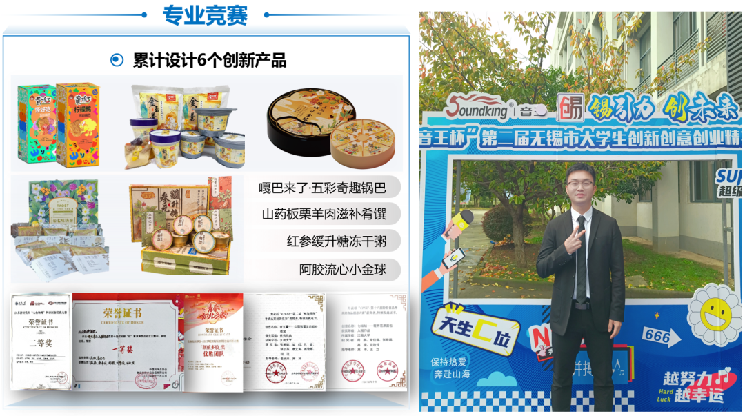 周鹏在读研期间勤学笃行、潜心科研。学业上稳扎稳打,2024-2025学年综合测评成绩专业第一。科研方向聚焦谷物功能成分与血糖调控,参与发表相关SCI一区论文4篇。与团队共同研发多款功能性谷物食品配方,先后荣获江苏省“大食物观”科研创新实践大赛二等奖、欣和杯校园创新大赛一等奖等5项食品科创奖项。