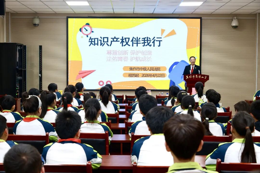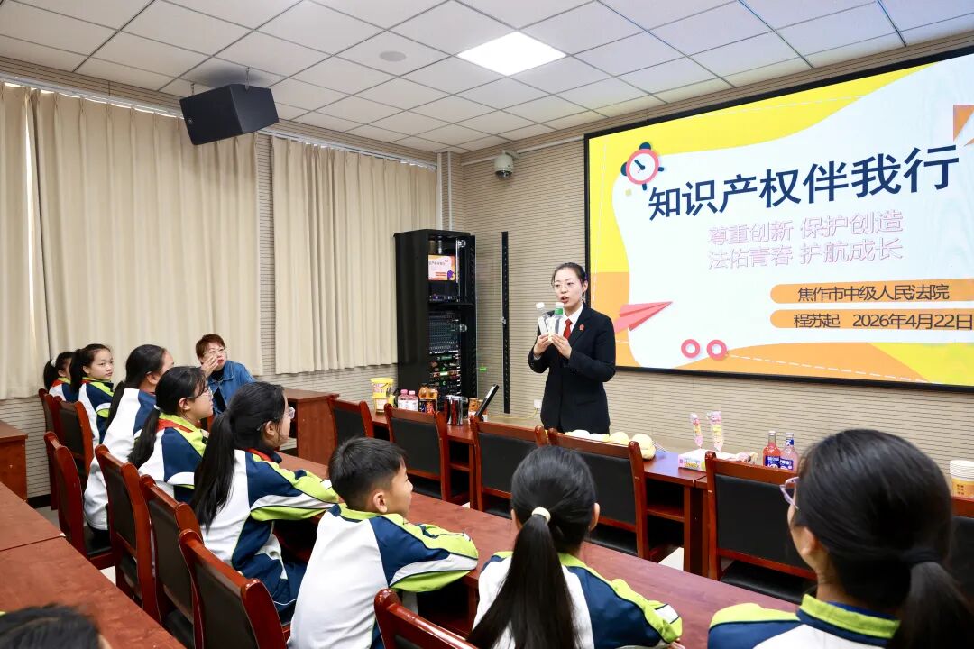 第26个世界知识产权日来临之际,为营造“尊重知识、崇尚创新、诚信守法”的良好氛围,4月22日下午,焦作中院开展知识产权宣传周暨“法佑青春”校园守护行动。民三庭法官助理、法治副校长程苏起走进焦作市道清小学,为同学们带来了一堂生动的知识产权普法课。