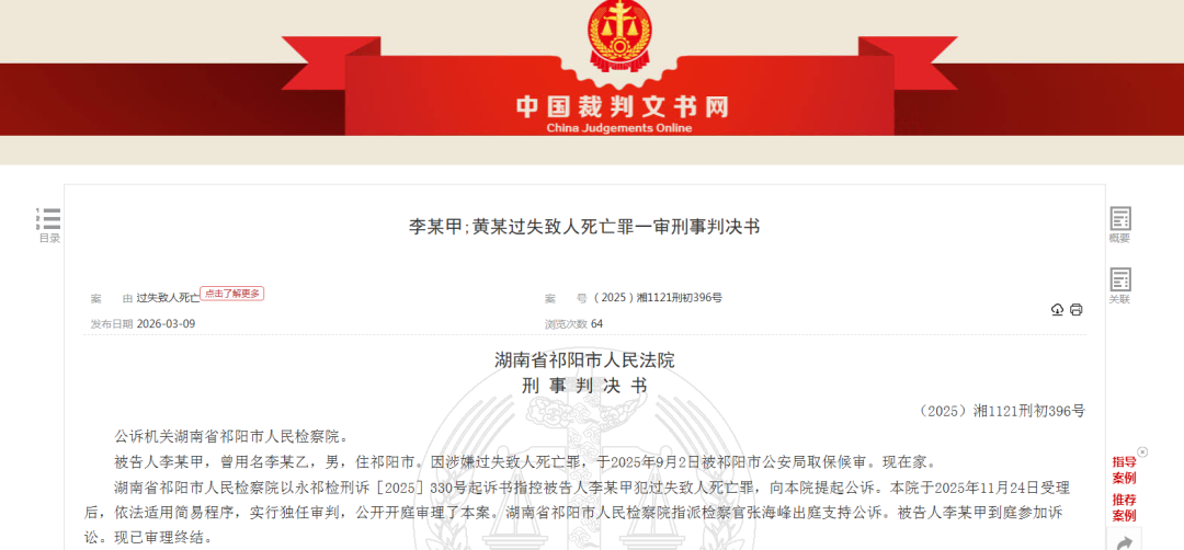 法院审理认为,李某甲过失致1人死亡,构成过失致人死亡罪。综合其自首、认罪认罚、积极赔偿及社区矫正评估意见,一审判决其有期徒刑一年六个月,缓刑二年。