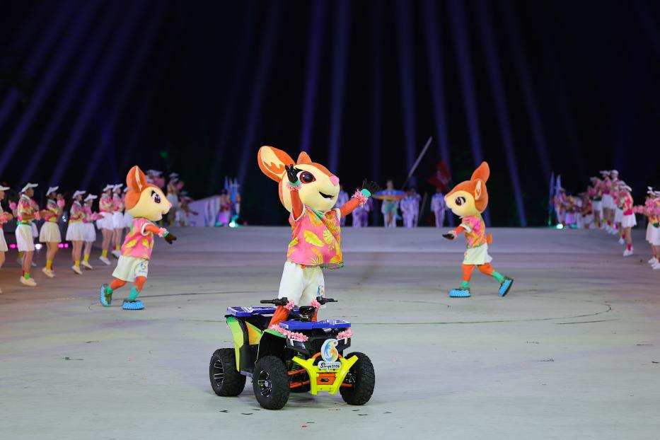 在文艺表演中,“亚亚”与黎族苗族青年欢聚嬉戏,以戏剧方式展开剧情。开幕式总导演黄沛凌表示,“亚亚”不是符号或标志,而是一个能跑能跳、活灵活现,能与大家玩在一起、乐在一起,具有海南三亚特质、灵动且富有生命力的可爱形象。