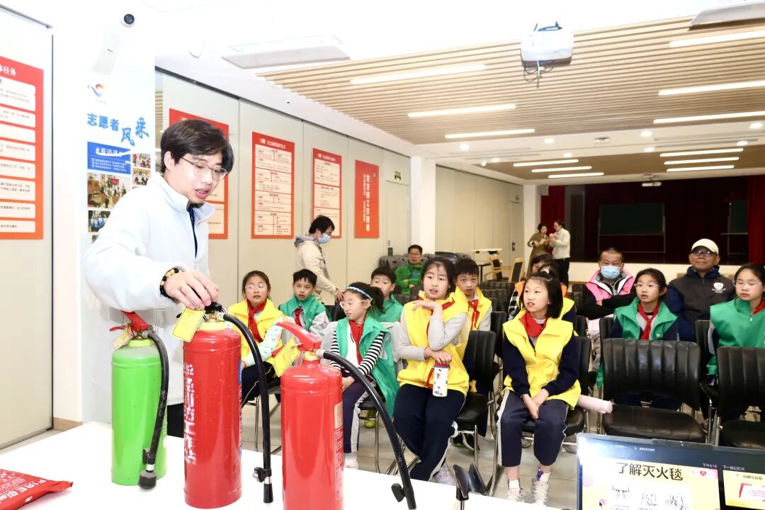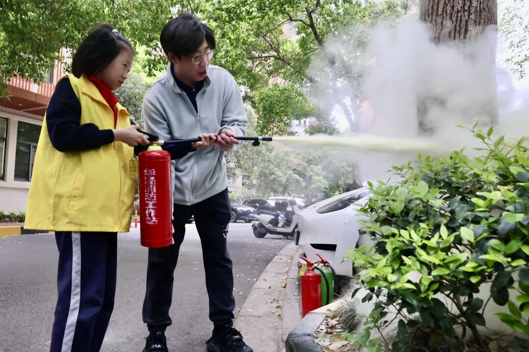 高安路一小“七彩志愿服务队”的同学们走进盛华景苑,参加消防灭火器使用培训与实操练习。培训中,老师详细讲解了灭火器的分类、正确使用步骤等内容,并带领同学们从理论学习转向实际操作,尝试使用灭火器、体验灭火流程。实操结束后,孩子们分享了自己的感受:“第一次用灭火器,确实有难度,一个人拿有点沉,以后得多练习才能更熟练。”“学会使用方法后,我就不害怕了,也敢自己尝试了。”