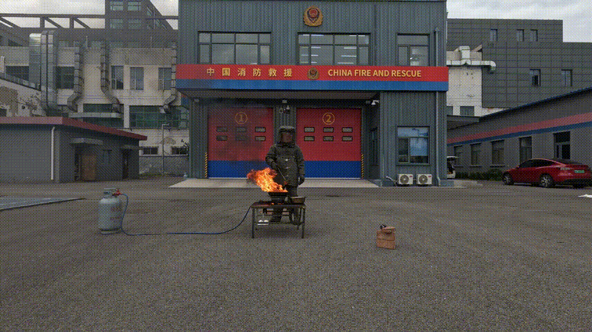 后续实验直观展示了油锅遇水的惊人威力:消防员向起火的油锅中泼入冷水,火焰瞬间变大,事先放置的拖鞋也被点燃。
