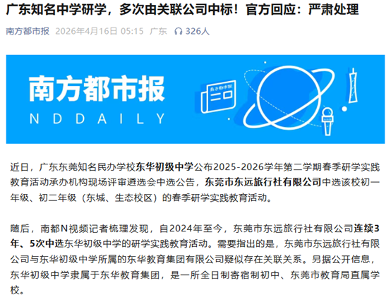 近期,东莞市某民办中学的研学中标公告引发热议,核心问题在于该校研学项目连续多年被存在关联的旅行社包揽。