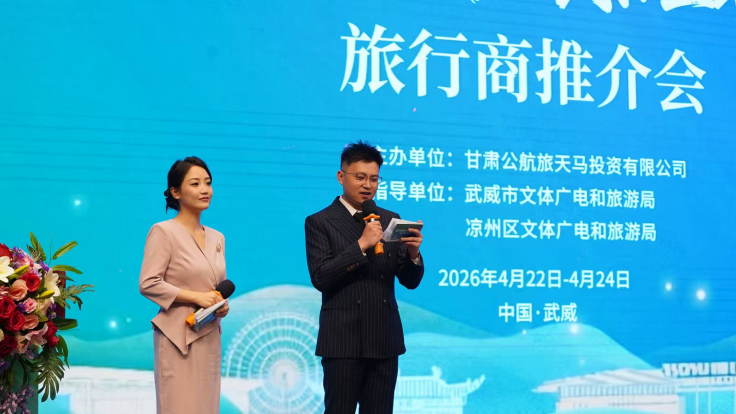 4月22日,以“天马故里聚合力 丝路新程共开拓”为主题的旅行商推介会在武威公航旅金陵大酒店成功举办。本次活动由甘肃公航旅天马投资有限公司主办,吸引了省内外百余家旅行社、研学机构、OTA平台及文旅行业代表参与,各方齐聚一堂共商文旅合作机遇,旨在进一步扩大“天马行空・自在武威”文旅品牌的知名度与影响力。