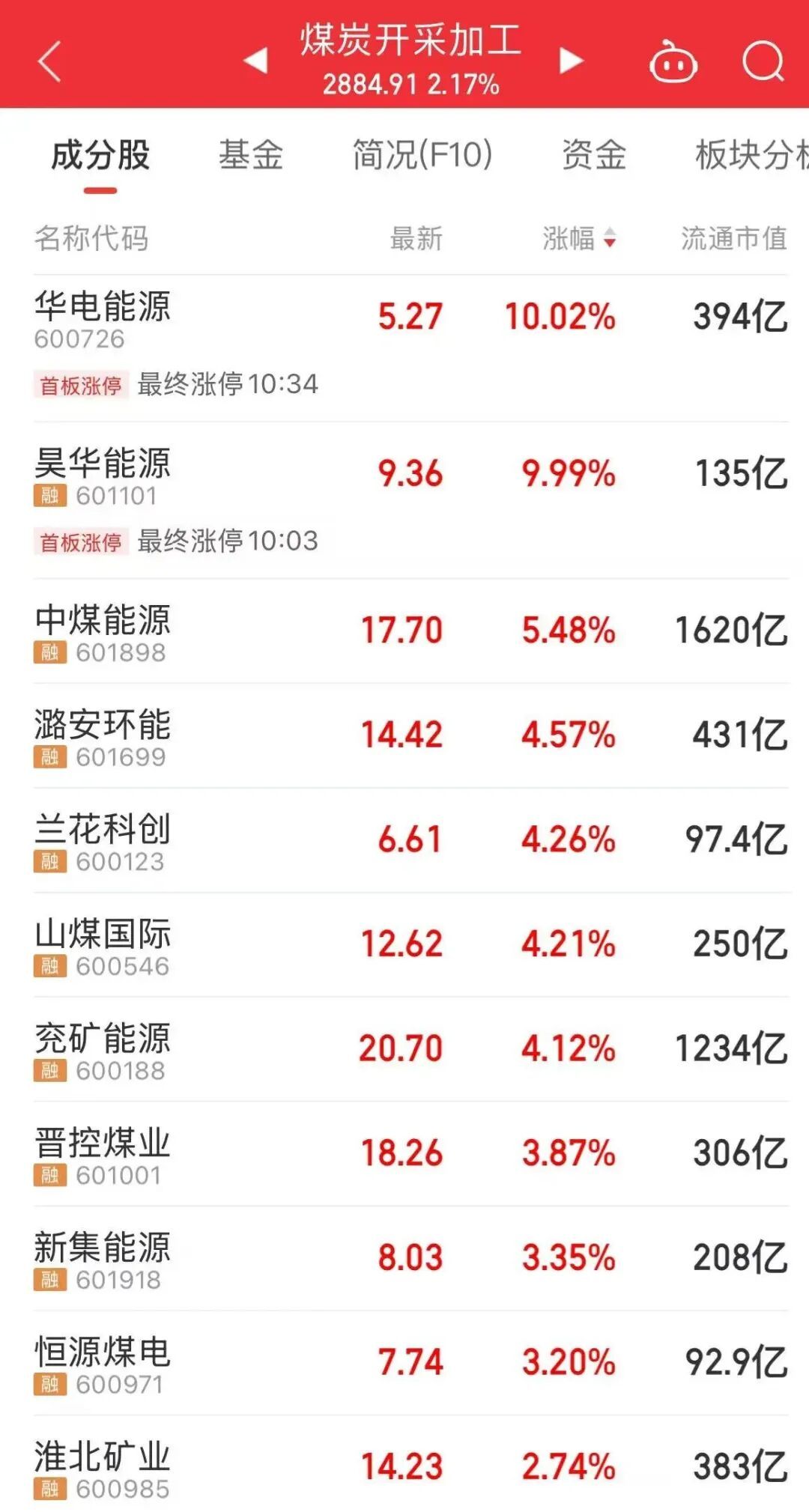 能源化工板块上涨,油气开采、煤炭等板块涨幅居前。煤炭板块中,华电能源、昊华能源等个股大涨。