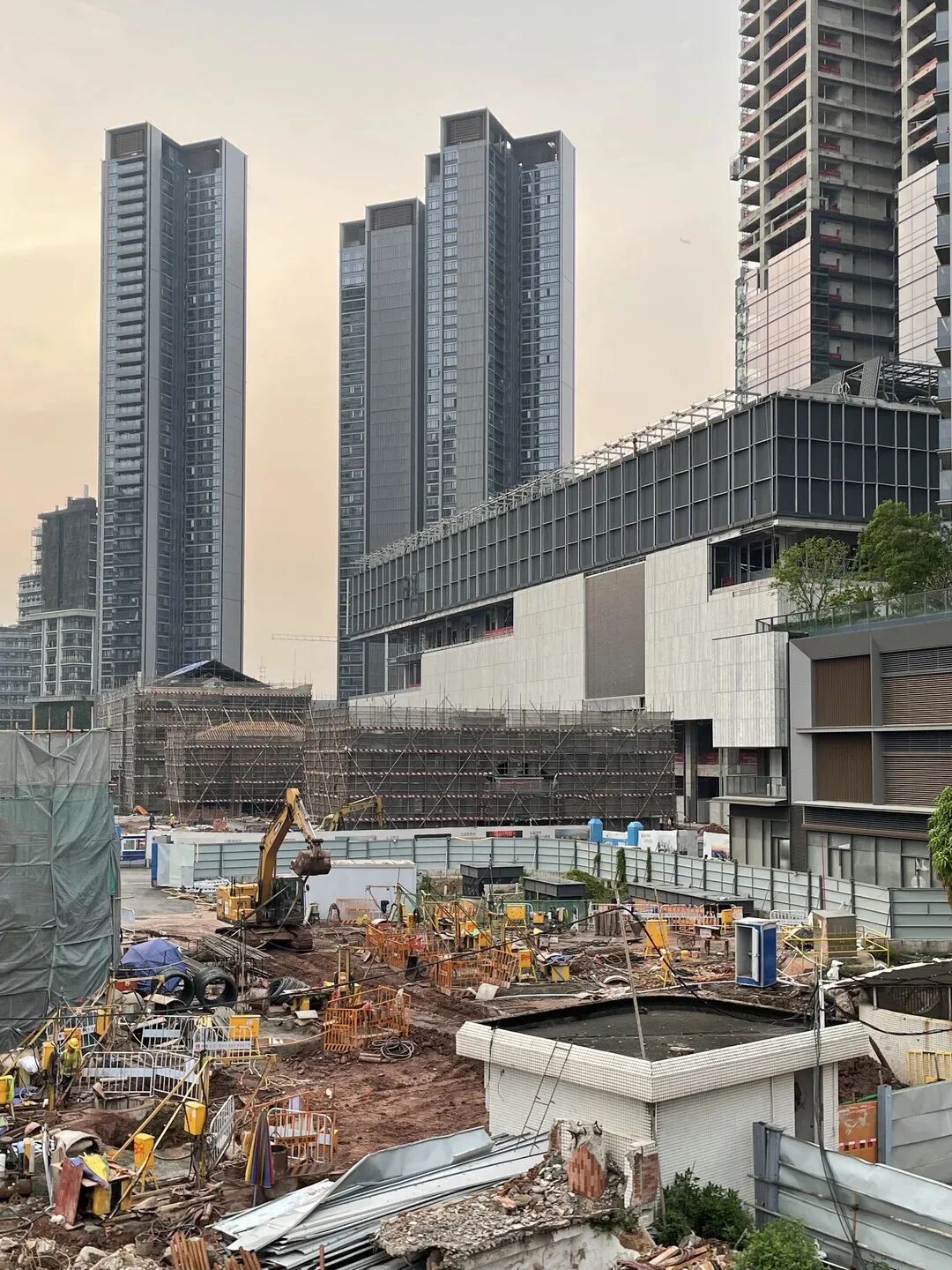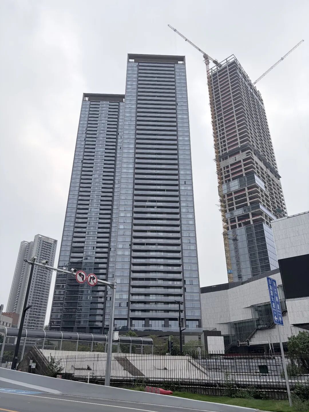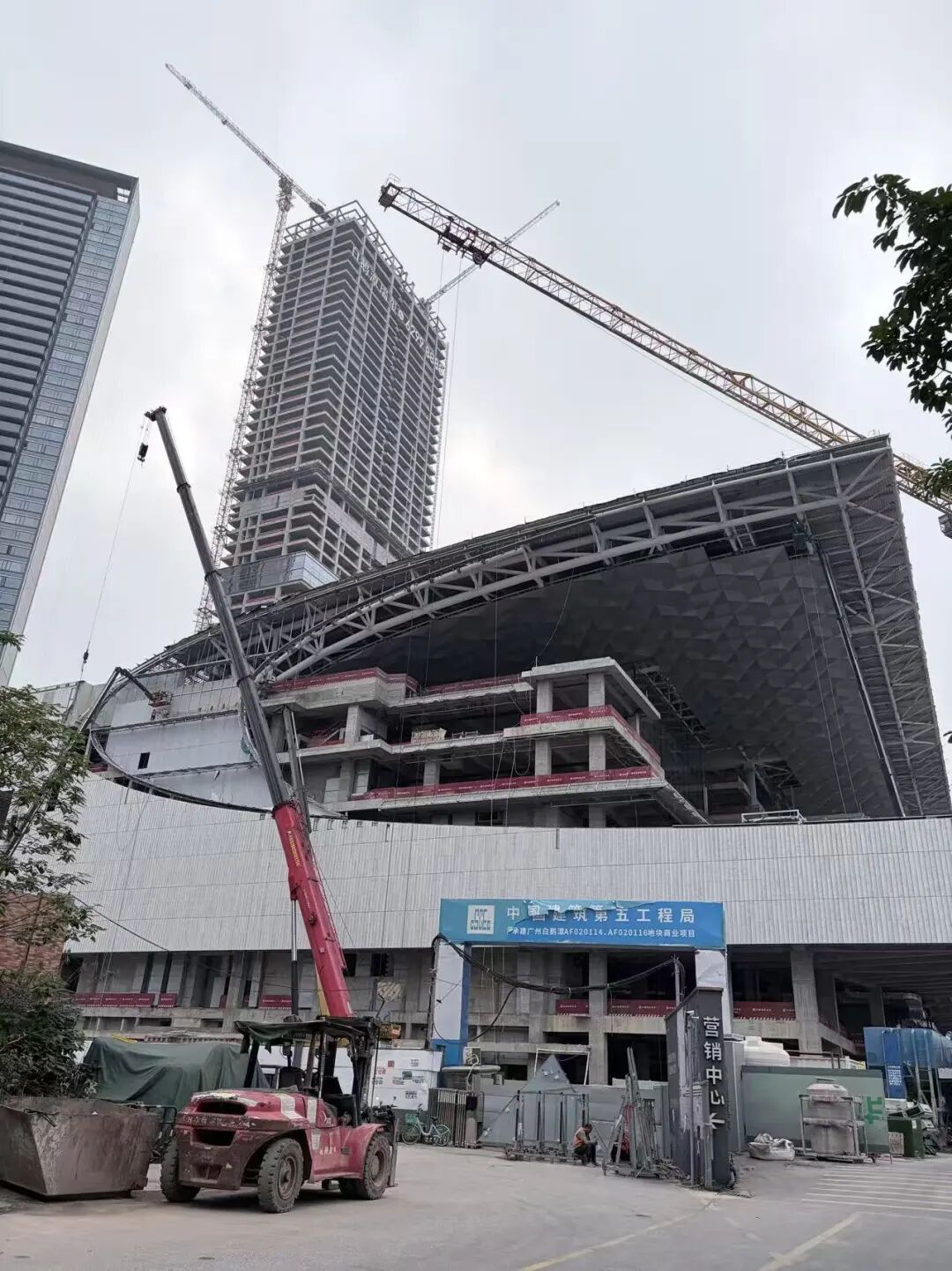 从现场情况来看,目前仍有多台塔吊和工人在进行施工作业。
