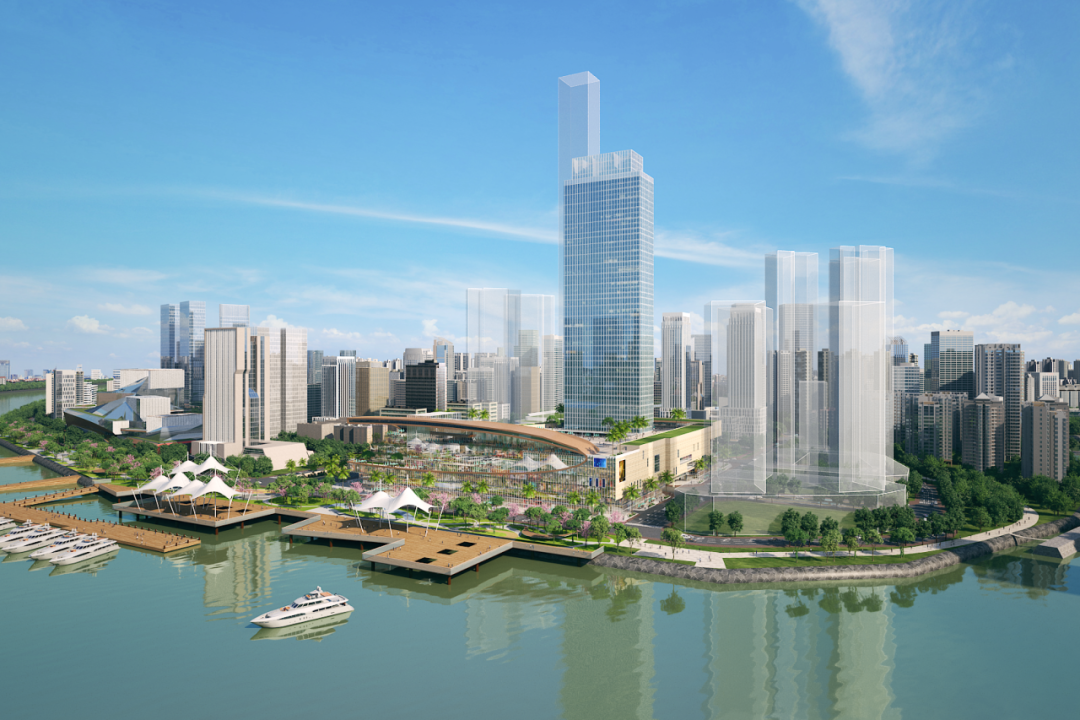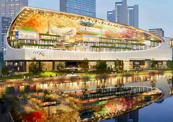 设计还融入了岭南文化与滨江生态元素,联动周边滨江公园,打造“商业+文化+生态”的沉浸式滨水商业体验。