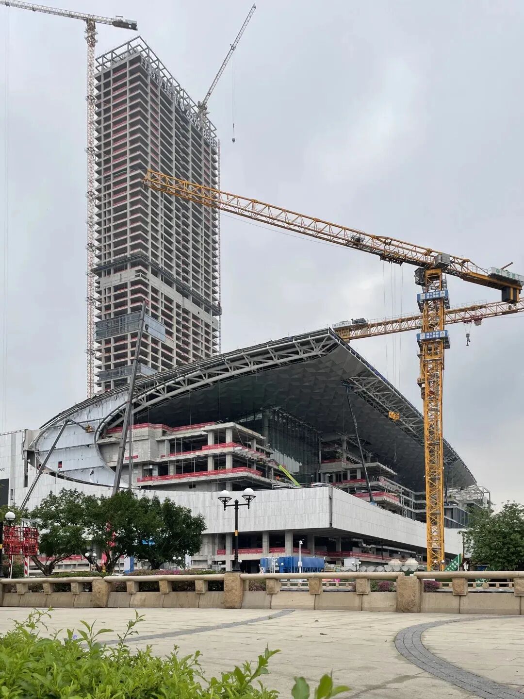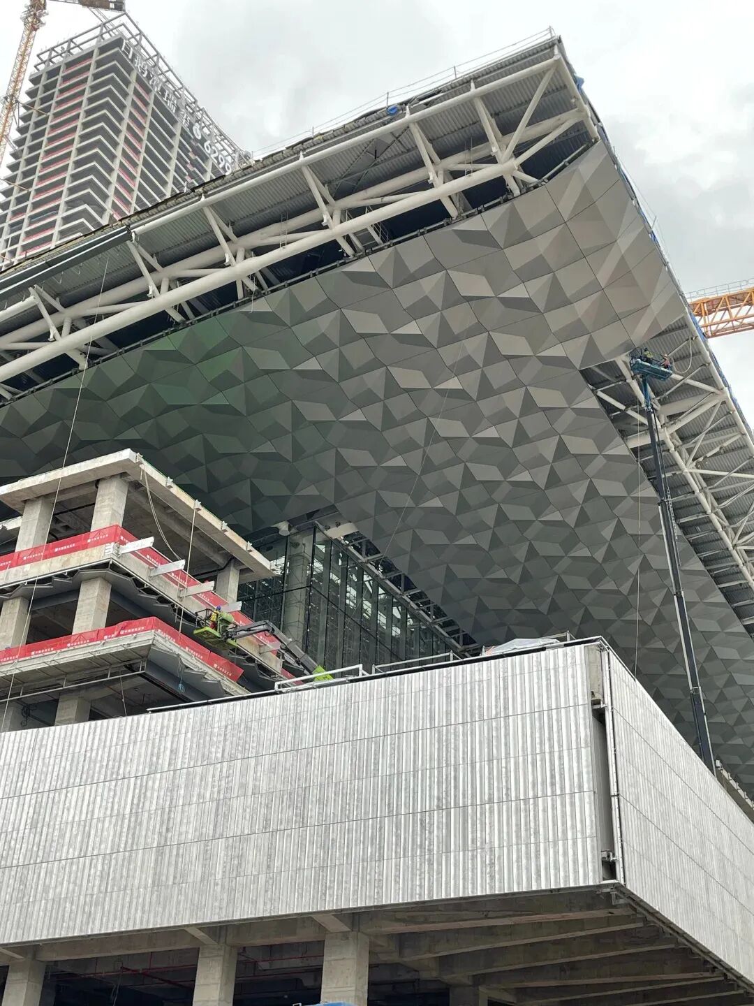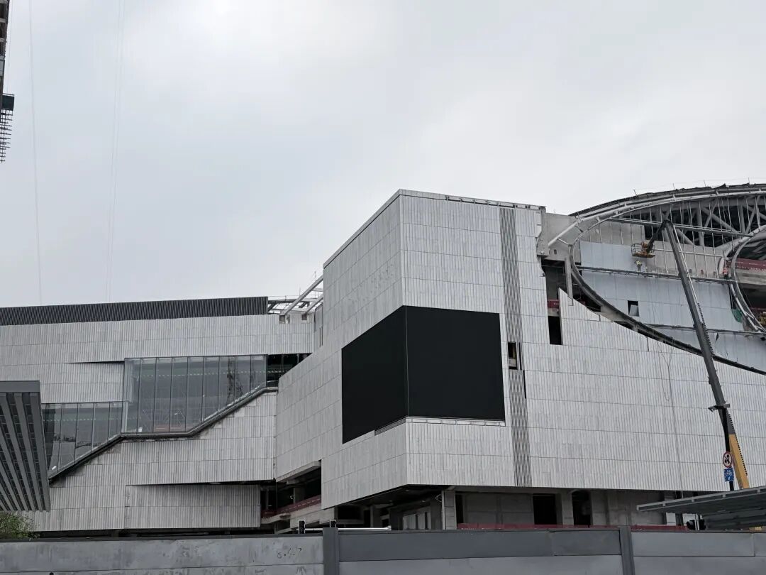 整个“贝壳”造型已初具雏形,不久后就能看到项目完整的建筑效果。