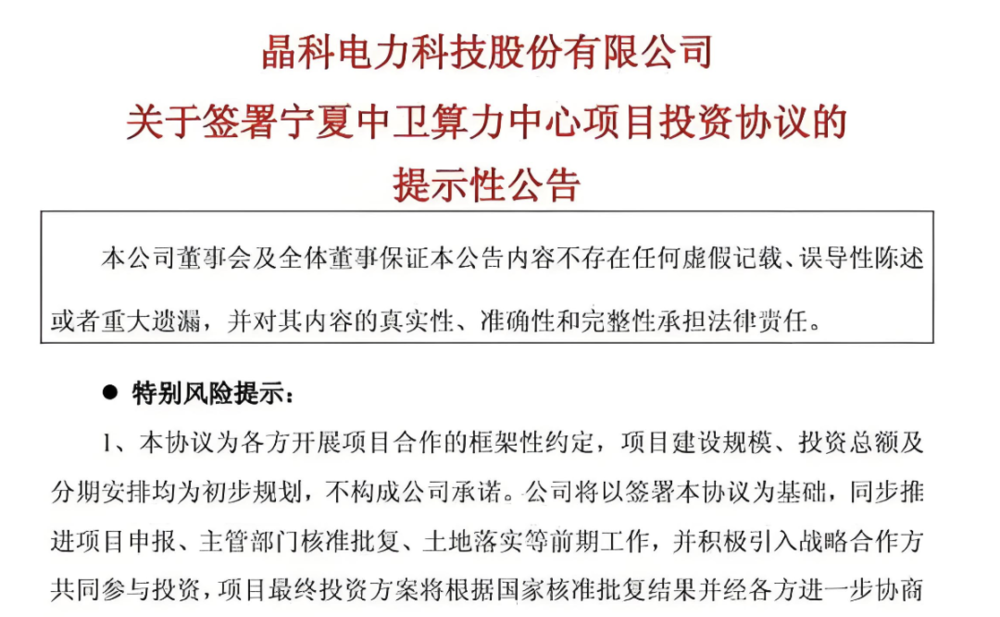 面对“资金来源”的质疑,晶科科技给出的解释是一套“算电协同”的发展思路:随着电力市场化改革的深化,单一发电业务的盈利稳定性面临系统性挑战,自建算力中心能够锁定绿电消纳渠道、对冲电价波动带来的影响。