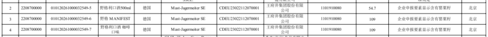 值得注意的是,该批次野格生产企业标注为“Mast-Jagermeiter SE”,而市场常见野格生产企业英文为“Jagermeister”,少了一个“s”。此差异是申报拼写误差、转写问题还是其他原因,有待核实。