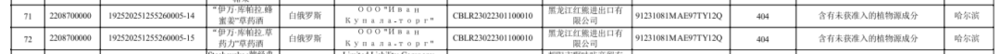 3月还查处2批次白俄罗斯草药酒——“‘伊万·库帕拉.蜂蜜姜’草药酒”“‘伊万·库帕拉’草药力.草药酒”,因“含未获准入植物源成分”被拒。