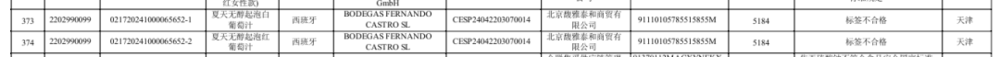 据海关信息,2批次未准入境的无醇葡萄酒为西班牙的“夏天无醇起泡白葡萄汁”和“夏天无醇起泡红葡萄汁”,均因“标签不合格”未能入境。